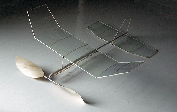 You might conclude that this kind of modelling belongs in a past era and that it matters little if such models are no longer flown. I'd like you to consider just what is being lost if that happens. Apart from losing the sheer beauty of seeing models like F1D's fly an unbelievably slow speed (prop turning at less than ONE rev per second!), we are moving to an age where craft skills are being lost. I regularly fly with fliers who think that the height of achievement is to see a carbon fibre (or RTF, or CNC cut kit model) fly, usually with motors which are much too powerful, thus ensuring a spectacular climb, followed by an equally rapid descent! They know nothing about the sheer fun of the challenge of squeezing a long flight out of a miniscule amount of rubber. Any duration flyer can see a commercial, over-powered model zoom up to the ceiling and know that the owner knows very little about building or flying. They have no real achievement once the novelty wears off of seeing a plane fly that someone else has designed and basically trimmed for you. What role models we must be for our young people! The basic message is that you can always BUY fun and success! I started modelling in 1958 and have built and flown most types of models, including many R/C models. I can honestly say that the models which have given me most enjoyment are the indoor duration models. These have included some scale models, but even they become boring compared with 'film' models (Such as Penny plane, F1M and F1D).